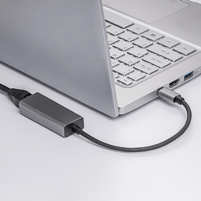 Do you have a new notebook? Do you want to take advantage of a stable connection to the Internet via cable, but there is no RJ45 socket in it? We have a solution!Adapter Akyga® AK-AD-65 is an external network card that does not require installation of any additional drivers. Just plug it into the appropriate port USB-C or Thunderbolt 3 in your laptop, then through the Ethernet cable connect to your router and you can enjoy a fast connection. This is an easy and fast way to reduce any lag that occurs with a Wi-Fi connection. The high quality guarantees the best connection and fast gigabit data transfer of up to 1000 Mbps. That's why it's the perfect hub for gamers who care about the lowest possible PING. But that doesn't mean that the adapter won't also work well in the office. On the contrary. The adapter's small size means it doesn't take up much space on your desk, while the aluminum casing makes it look good, especially with metal-clad laptops like MacBook or Chromebook. At the same time, the 15cm cable doesn't restrict you and allows you to route the card from the side USB C port to behind the matrix. This keeps your workspace neat and tidy. What's more, the adapter doesn't require additional power, and built-in LEDs let you know the status of your Internet connection.
