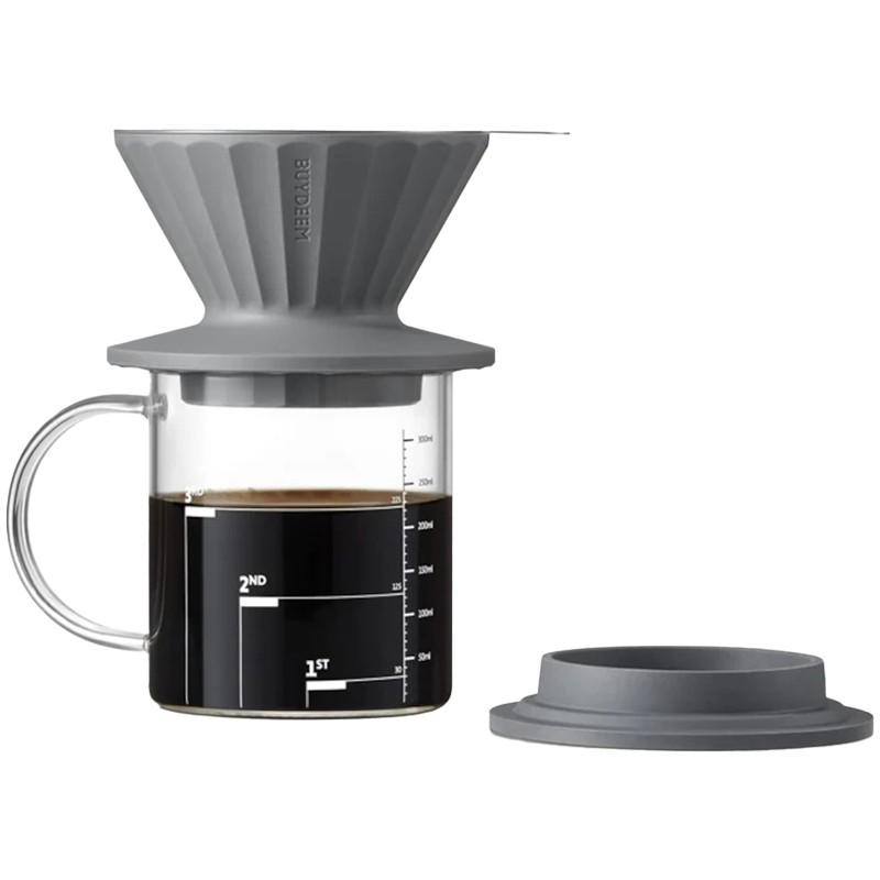 To urządzenie sprawdzi się doskonale w podróży jak również w domowym zaciszu. Przenośny zestaw w którego skład wchodzi szklany kubek, silikonowy filtr z pokrywką oraz sitko ze stali nierdzewnej.