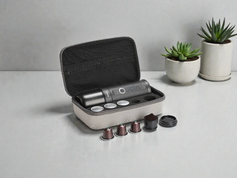 Bądź zawsze przygotowany na świeżą kawę dzięki naszemu zestawowi prezentowemu, zaprojektowanemu z przegródkami na dodatkowe kapsułki. Przemyślana konstrukcja oferuje więcej przestrzeni, aby spakowanie wszystkiego, co jest potrzebne, było proste, a cieszenie się kawą taką, jaką lubisz, bezkompromisowe.