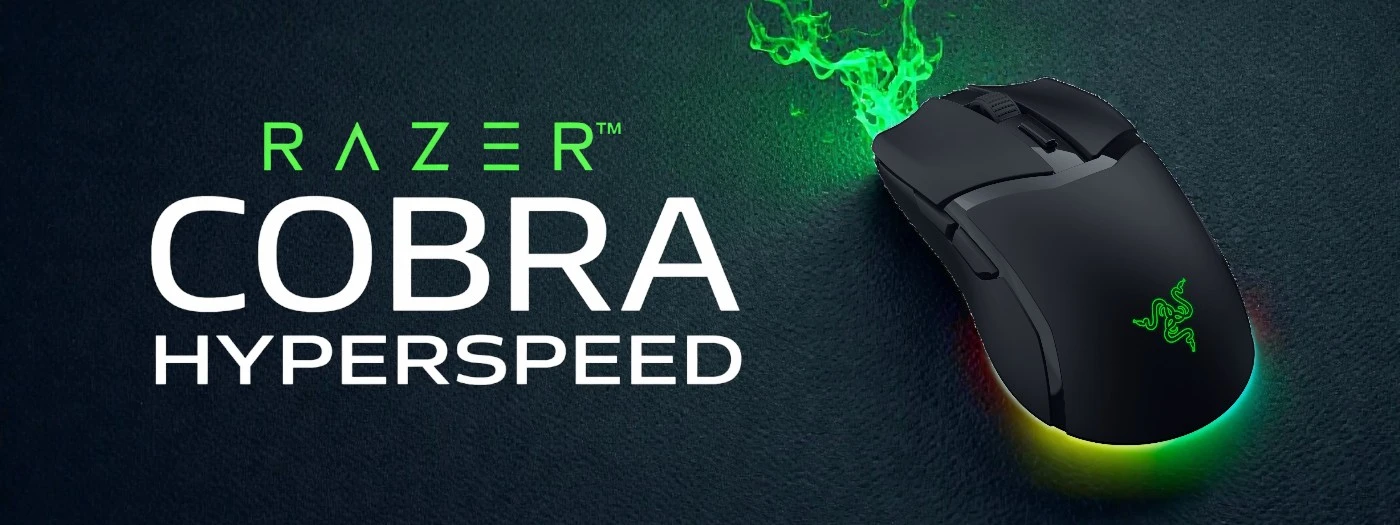 Step deeper into the game with the Razer Cobra HyperSpeed - a lightweight, symmetrical wireless gaming mouse engineered for pure speed, precision, and freedom of movement. Designed to disappear in your hand while amplifying every action on screen, it lets you experience gameplay in a new light. With dynamic 4-zone Chroma lighting, 9 fully customizable controls, and next-generation optical technology, the Cobra HyperSpeed delivers an uncompromising competitive edge without limits.